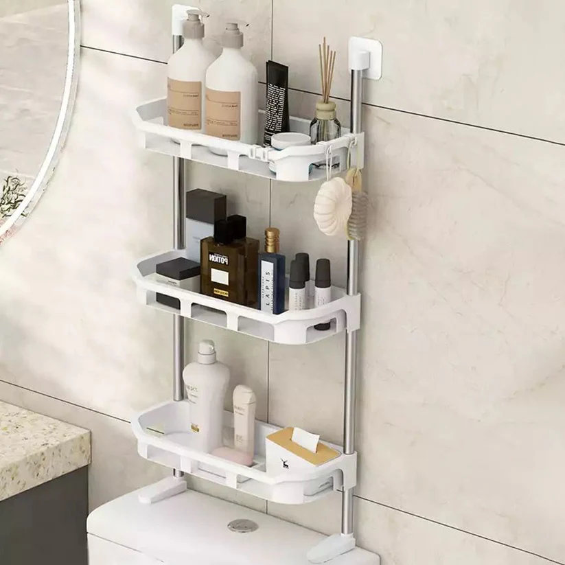 Optimiza el espacio de tu baño con nuestra estantería de 3 niveles, diseñada para ayudarte a organizar todo tipo de artículos como frascos, cepillos, jabones, cremas, y más. Además, incluye ganchos para colgar tus utensilios de baño, asegurando que todo esté al alcance de tu mano.
